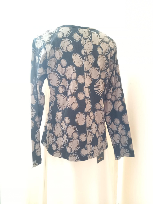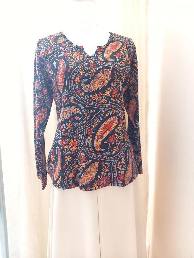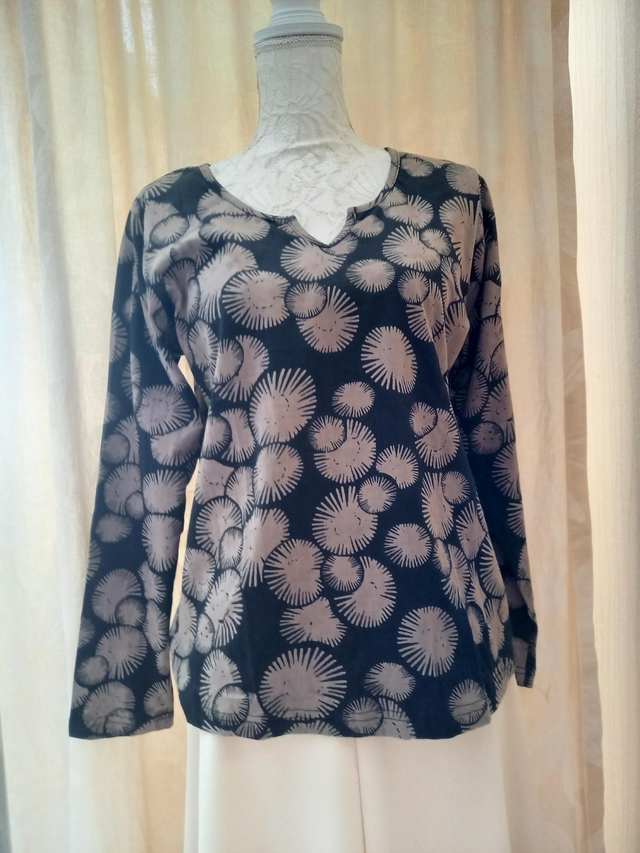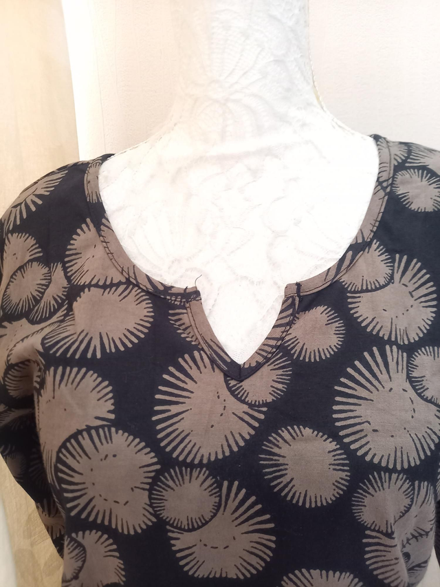Tunique imprimée en gersey de coton, manches longues et col V. Marque Aller simplement Lavage machine à 30 °C fabrication artisanale en Inde.