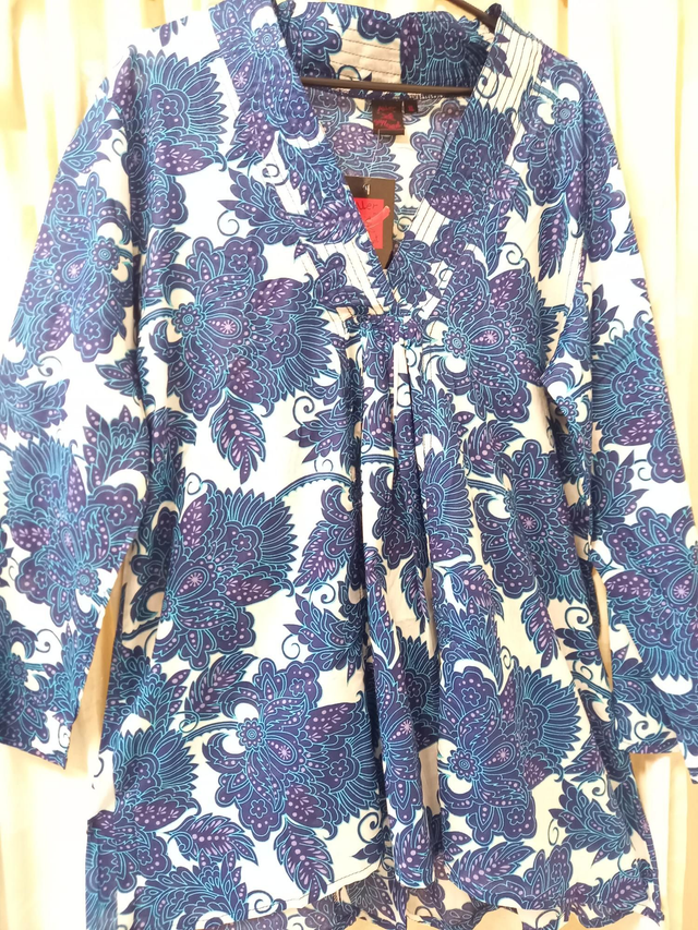 Tunique imprimée en coton manches 3/4 et col V kimono. Taille Xl , marque Aller simplement.