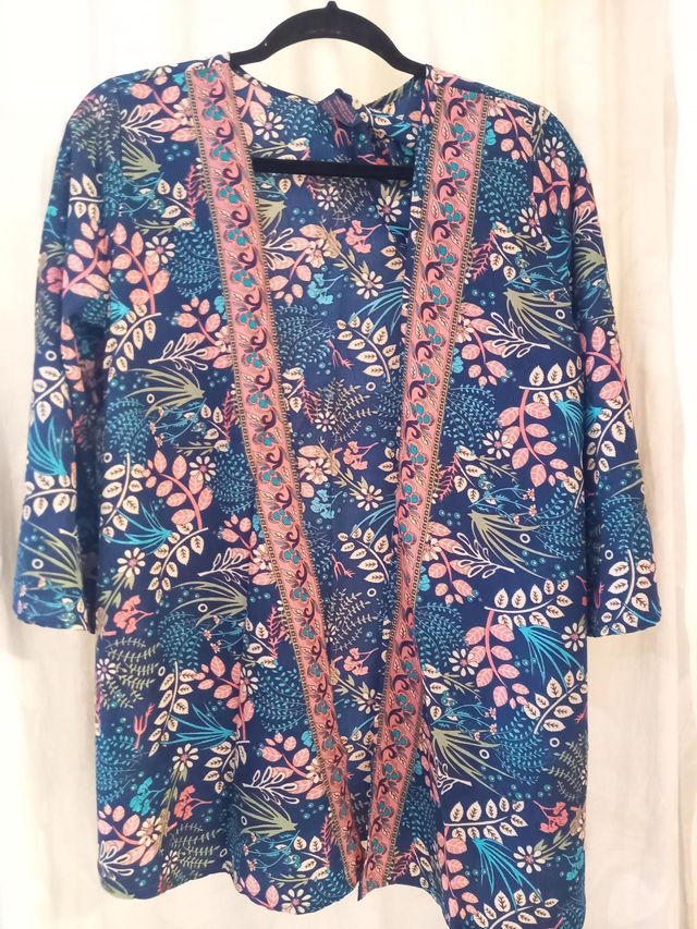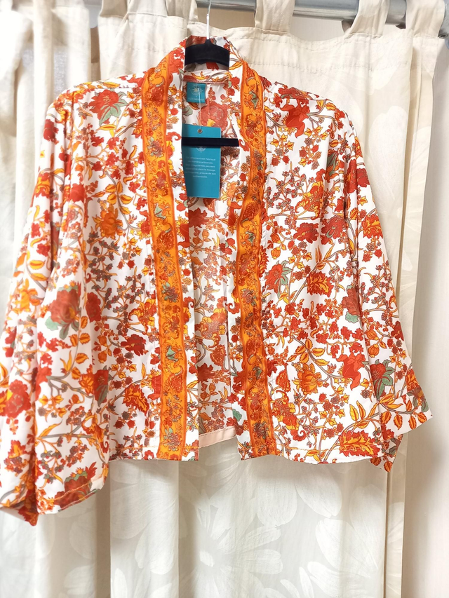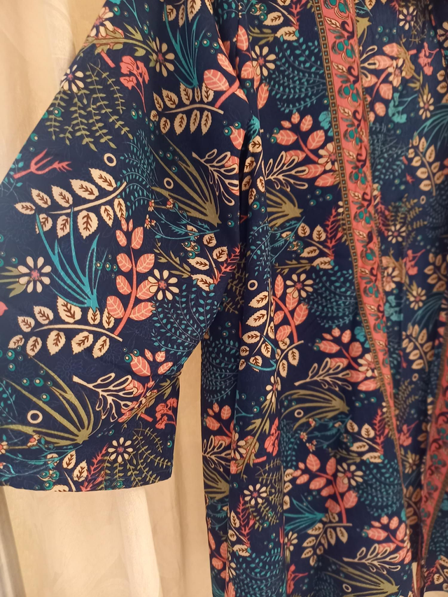 Kimono imprimé en polyester avec sa ceinture souple. Fabrication artisanale en Inde de la marque Ipanima. Lavage machine à 30 . Taille Unique ( 40/42)