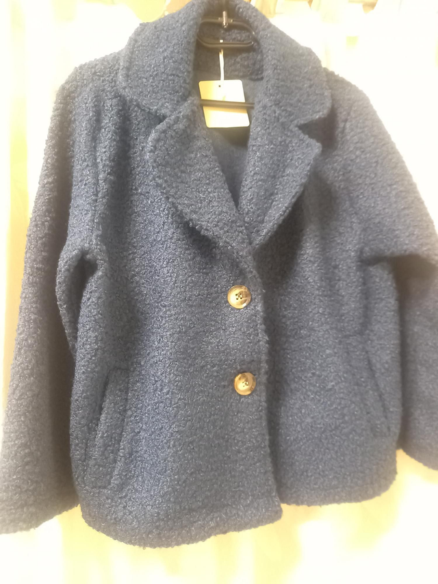 Veste à manches longues avec poches sur les côtés en polyester et laine. Fermeture boutons
