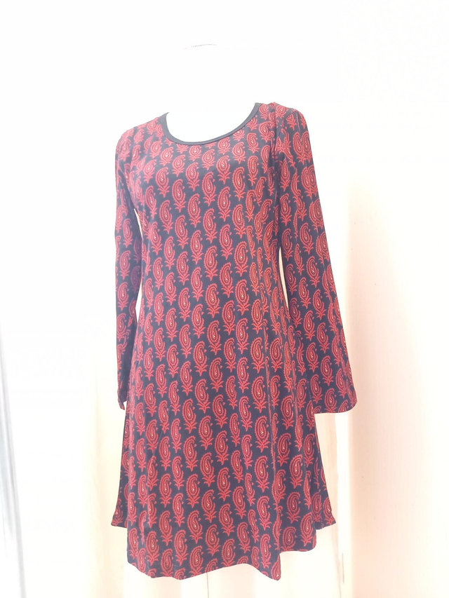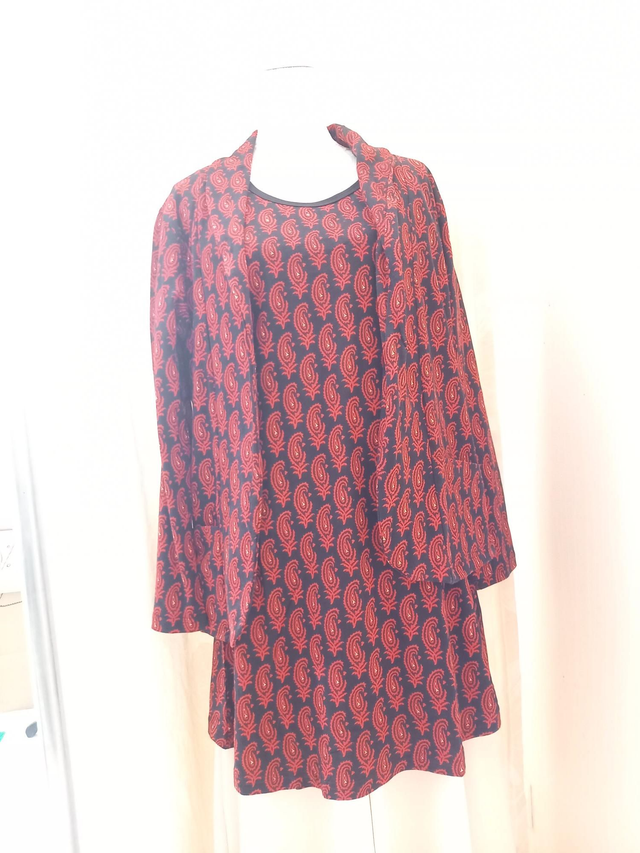 Robe imprimée en Jersey de coton Col rond avec manches longues. Nous disposons de la veste imprimée qui forme un ensemble en taille Xxl et coûte 35 € .