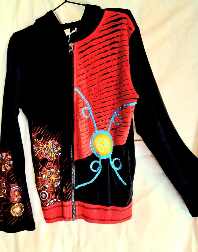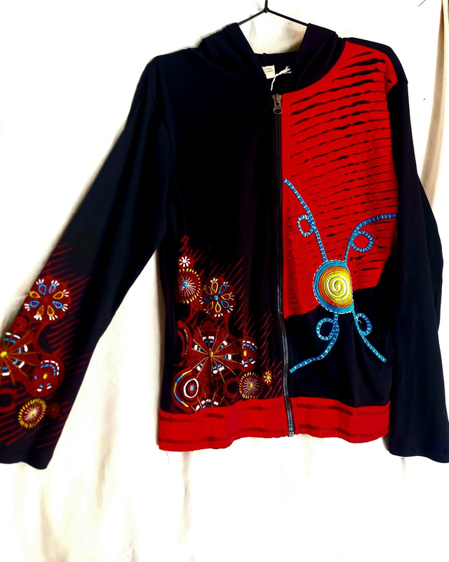 Veste coton avec capuche à manches longues, fermeture éclair. Fabrication artisanale en Inde